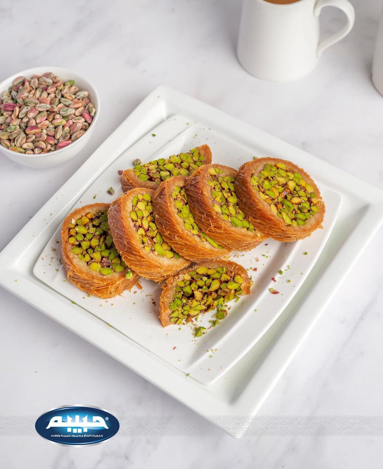 A. Habibah Burma Shamiah Pistachios البرمة الشامية بالفستق الحلبي من حلويات حبيبة