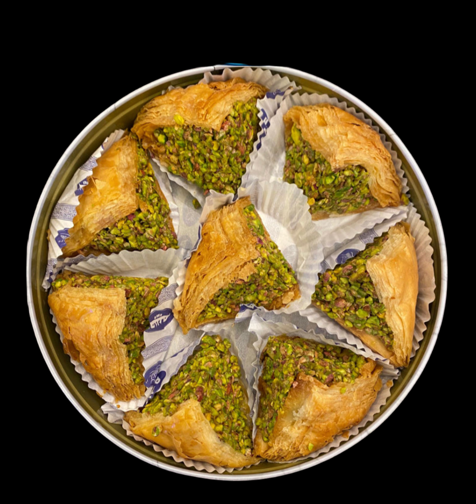 Triangle baklava dough filled with the best quality of pistachios.